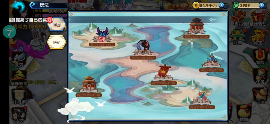 况且,天罡凤影拥有跨服PVP增伤10%,跨服PVP减伤10%,寒凛抵抗几率8%,在PVP战斗中增加对敌方的伤害10%,减少敌方对我方的伤害10%,还能提升寒凛抵抗几率8%,比如门派战、仙派争霸、众仙争鸣等活动,是PVP实战的好帮手。PVP活动如下图: