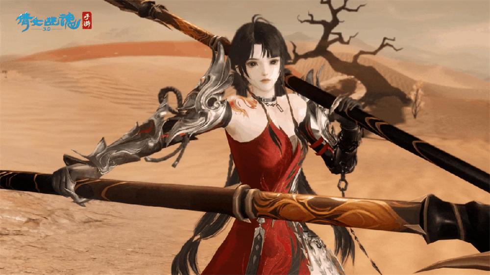 大漠烽烟四起,漫天风沙之中,红衣女将傲然而立。多年征战,双刀早已与她融为一体。此刻,眼眸陡然一转,战刃腾空而起,乱石翻飞间,神兵入掌!
