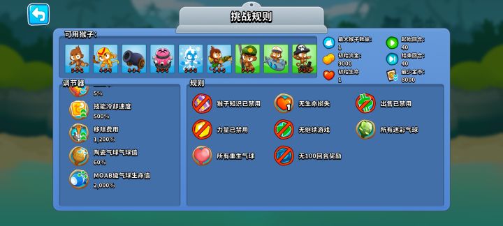 打高挑重要的是思路,先看看规则,比较重要的是 所有气球都是迷彩气球,和飞艇生命值20倍,以及限制8000块钱。