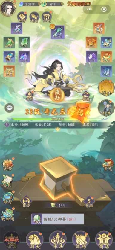 看到中间那个大锤子,相信很多道友都知道我们游戏玩法了,没错,就是一下一下打锤炼装备,神装在手天下我有!或许有些玩家也玩过类似的游戏,比如寻道○千大话○境风云○剑等等等等,我这边就不方便继续赘述了。