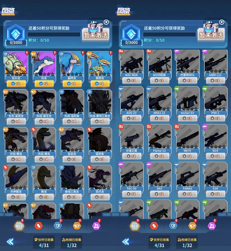 新增图鉴系统,已拥有、未拥有的恐龙和武器一目了然,更方便玩家有目的地收集