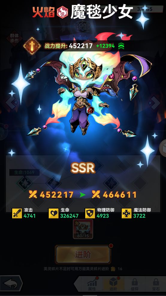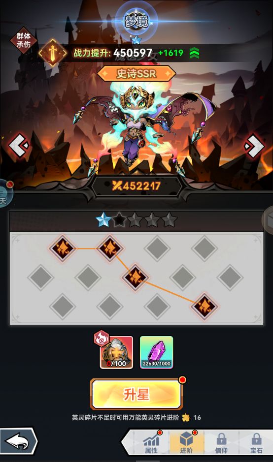 当进阶到达末端将来到升星预备阶段,我们只需要准备好英灵碎片和幻阶石就能完成巨大的跨星级综合战力提升;
