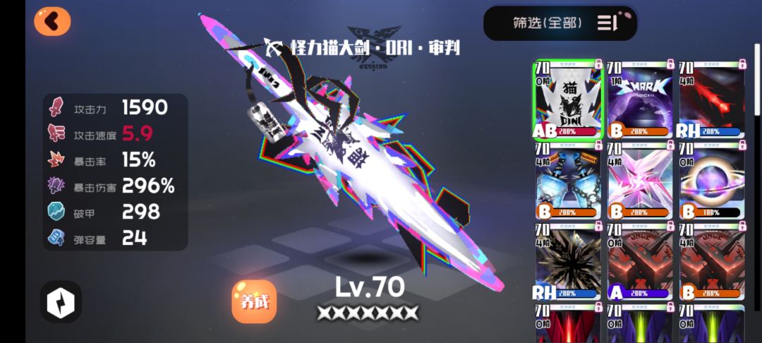 使用了和巫辰专武同为能量武器的猫大剑,将攻击力调整至和巫辰专武相同(存在小数位的差异),测试不暴击情况下巫辰技能对0护甲靶子造成的伤害。