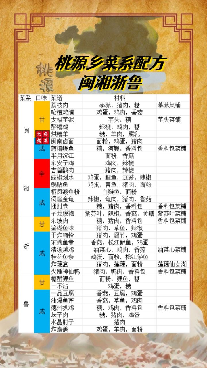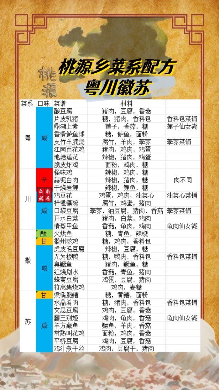 桃源乡八大菜系考核全配方