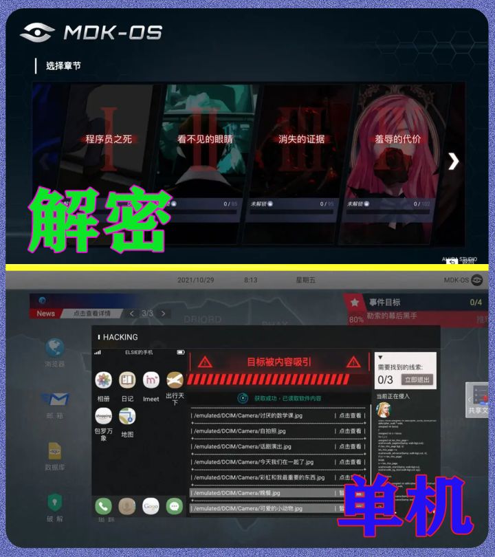「无处遁形」是一款单机类的剧情向黑客解谜游戏。