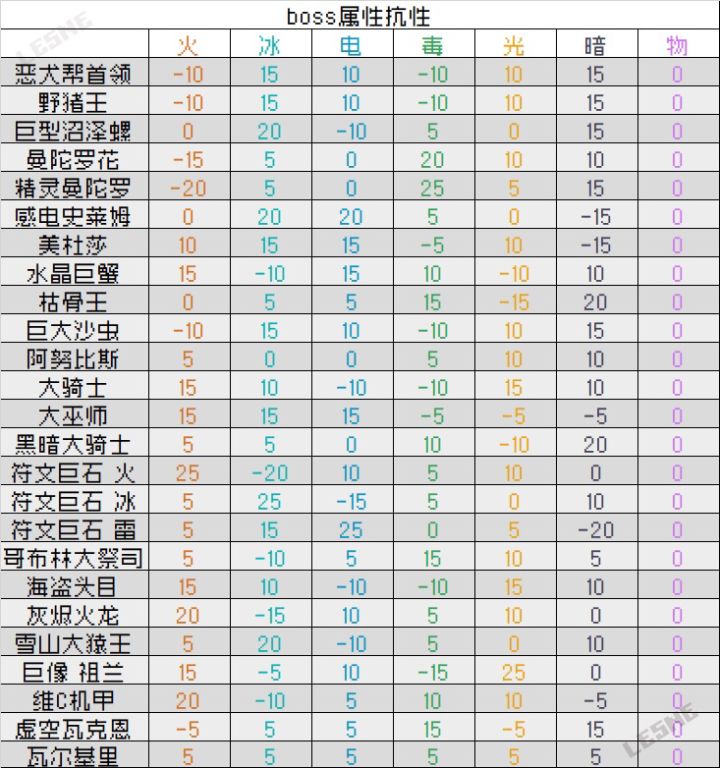 图2为 仅包含试炼之地boss单一属性抗性的总和