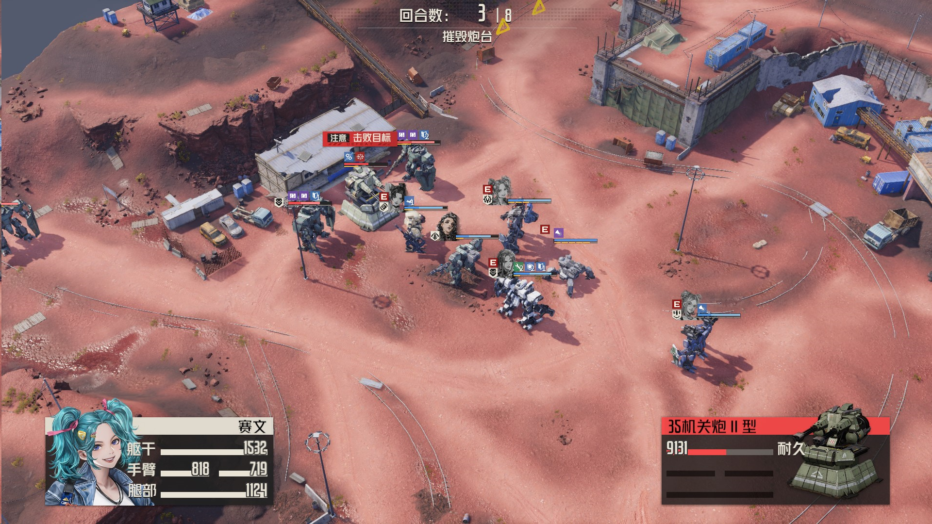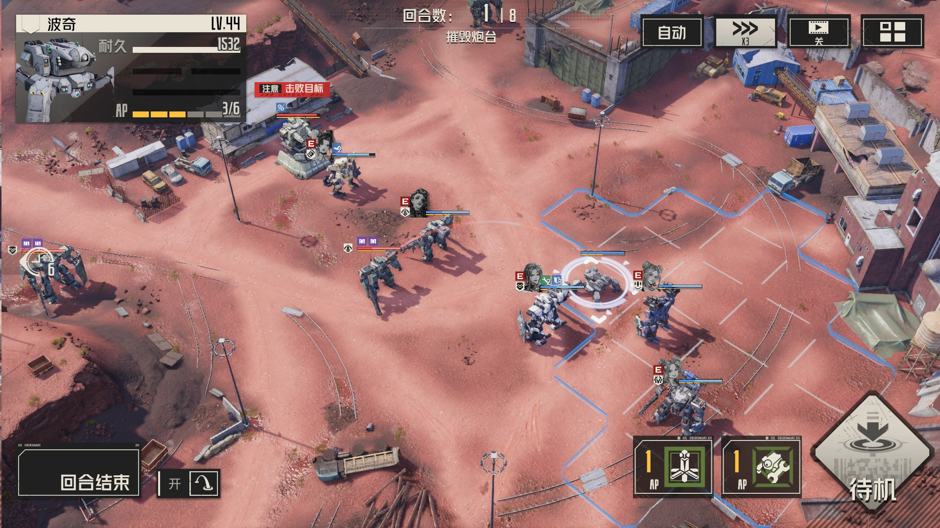 芙烈达上前待机,奈奥米将一个机枪兵打残,虹补刀后攻击炮台