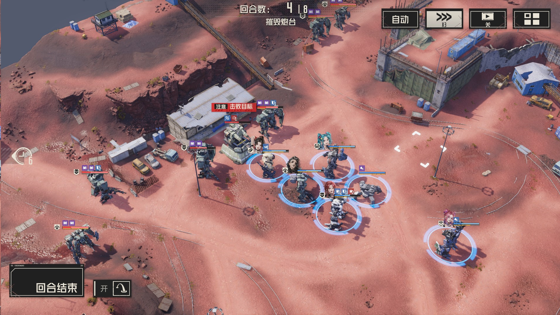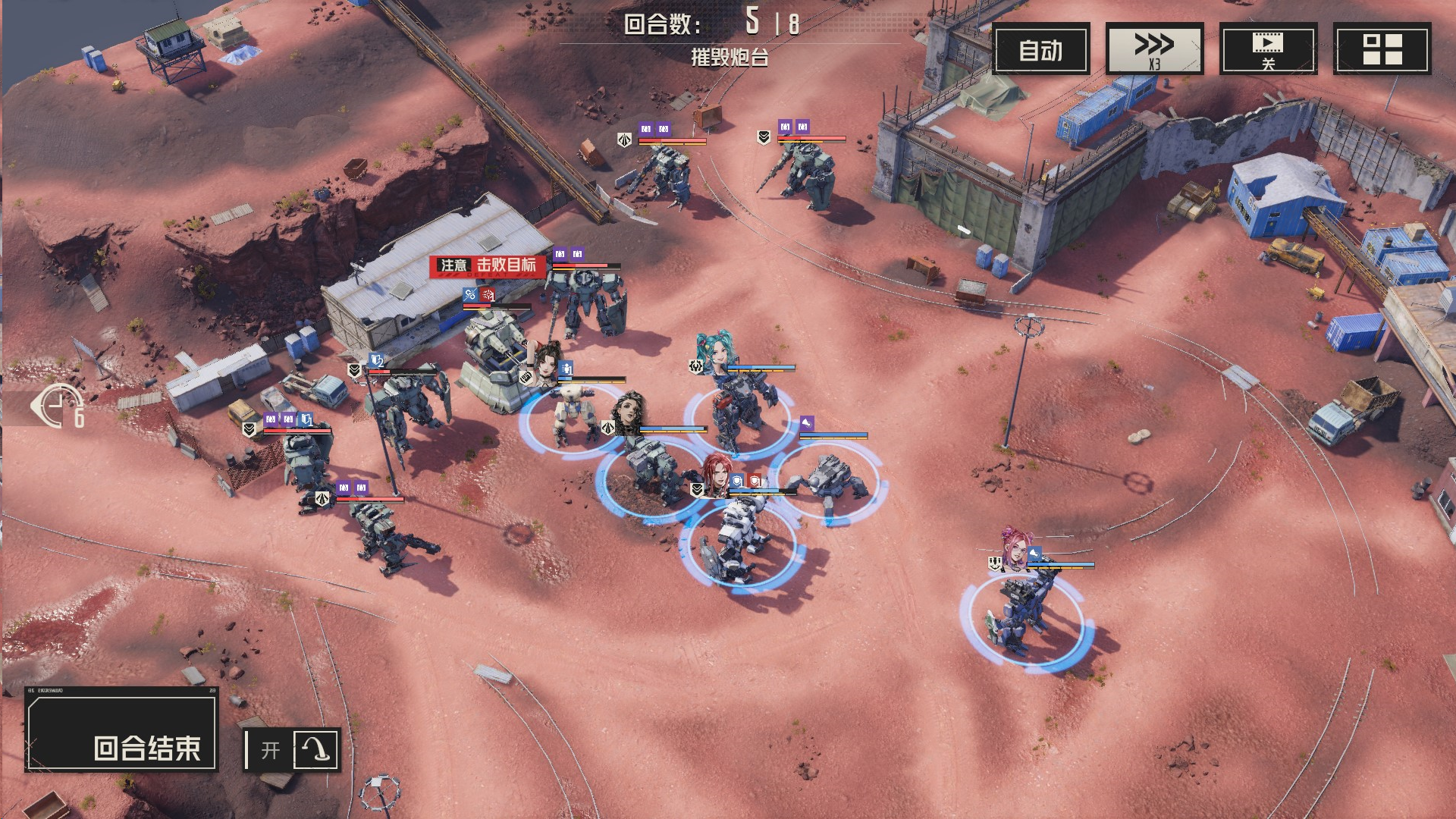 奈奥米攻击左边大盾兵,其余人继续攻击炮台