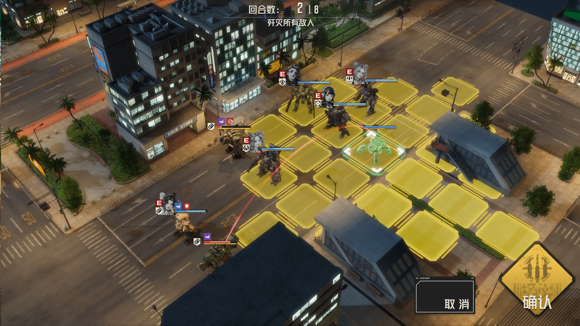 本关敌方全部为近战,我方可考虑多上远程攻击机师,长手打短手