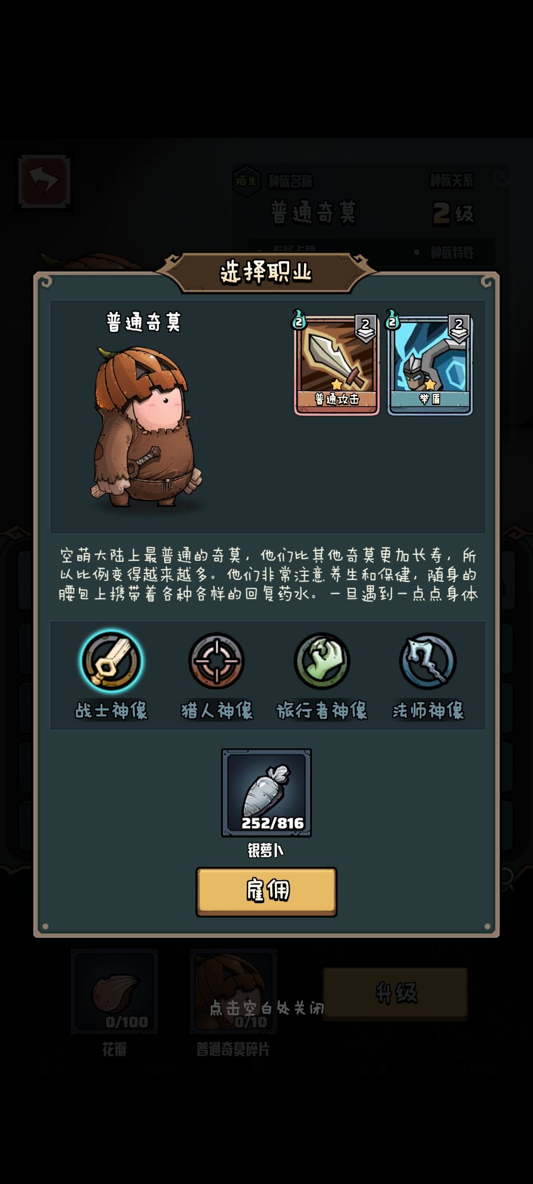 我们选择战士神像就获得一只战士流派的普通奇莫。