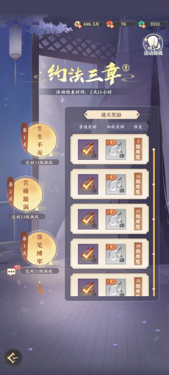 约法三章这个加成奖励领不了,有大神知道这个咋整么?