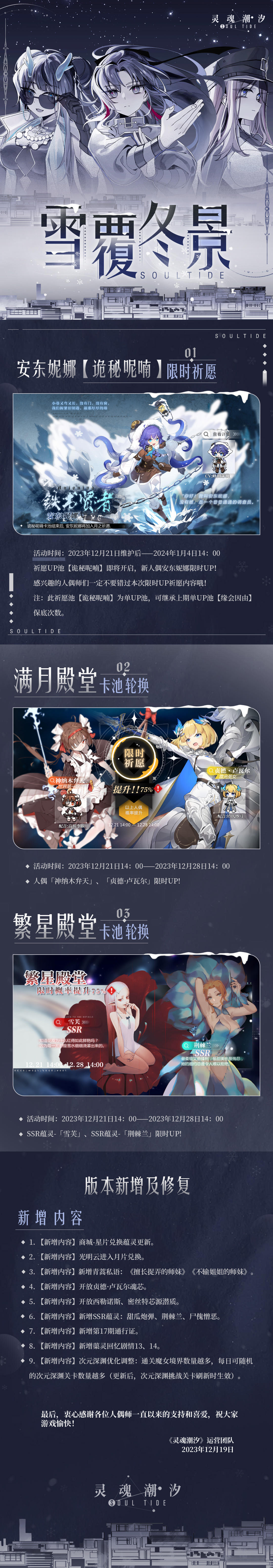 《灵魂潮汐》12月21日全新版本【雪覆冬景】停机维护公告