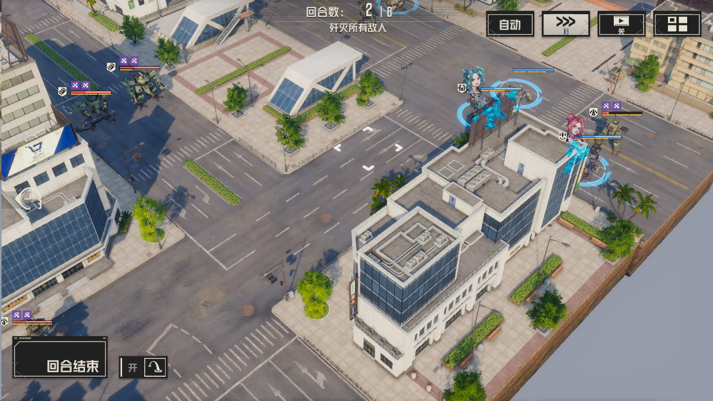 本关解法:本关各个方向都有敌人,我方攻击一个方向敌人,那么远方的敌人移动过来,就会满足buff条件,获得再动,对我方造成较大威胁,因此我方需要注意走位,避免出现敌人移动后能够攻击到我们的情况,同时尽量多消灭敌人。本关上场机械师和两个输出。