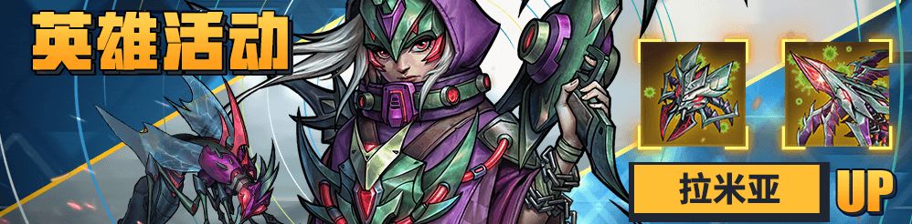 活动期间获得紫色和橙色英雄:拉米亚,橙色英雄:菲碧 可额外获得图纸奖励。