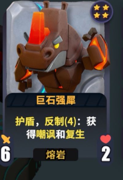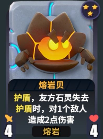 打法概要:这个套路主要是让友方的盾牌被打触发熔岩贝攻击,开局可以拿斗战萌犬得到嘲讽道具把带护盾的都上嘲讽,小鹿 饿狼等有护盾的挡刀护血,3本拿熔岩贝,然后有盾的都可以拿比方火岩鸡,巨石强犀。