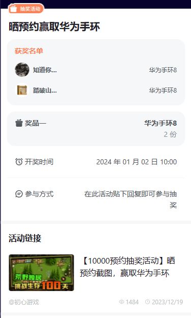【🎁奖品内容】✨抽取两名幸运玩家,分别送出华为手环8一份(以最终实物内容为准)