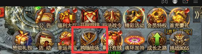 跨服战场:包含【跨服膜拜】【次元首领】【跨服领主】【跨服竞技大乱斗】【跨服夜战沃玛三】【跨服沙巴克】【逃脱试炼】【秘境打宝】共八个跨服活动