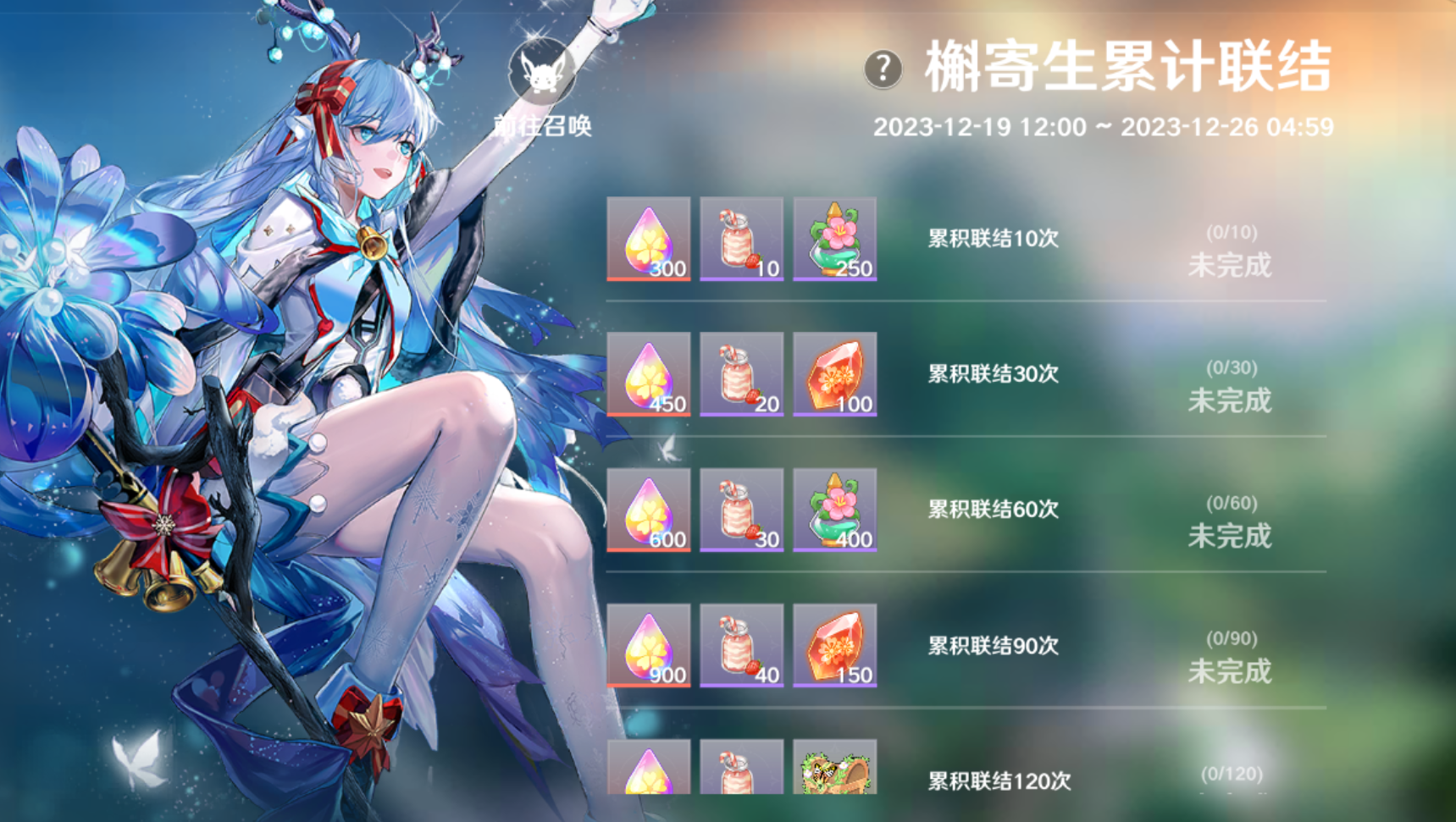 除了累计联结150次和300次获得的【槲寄⽣】外,联结活动还可以获得大量元素召唤种子和其他实用道具,快速提高游戏战力,推进游戏进程哦!