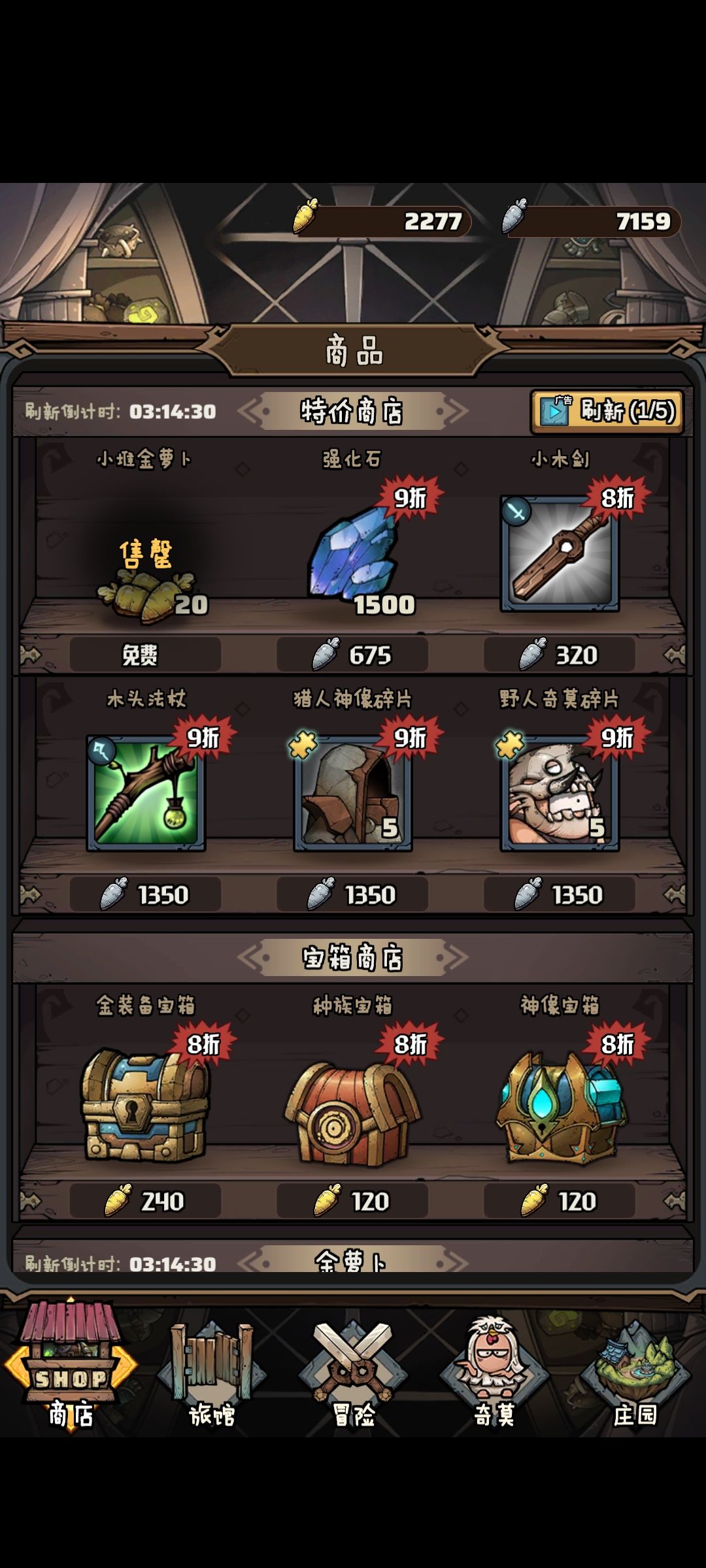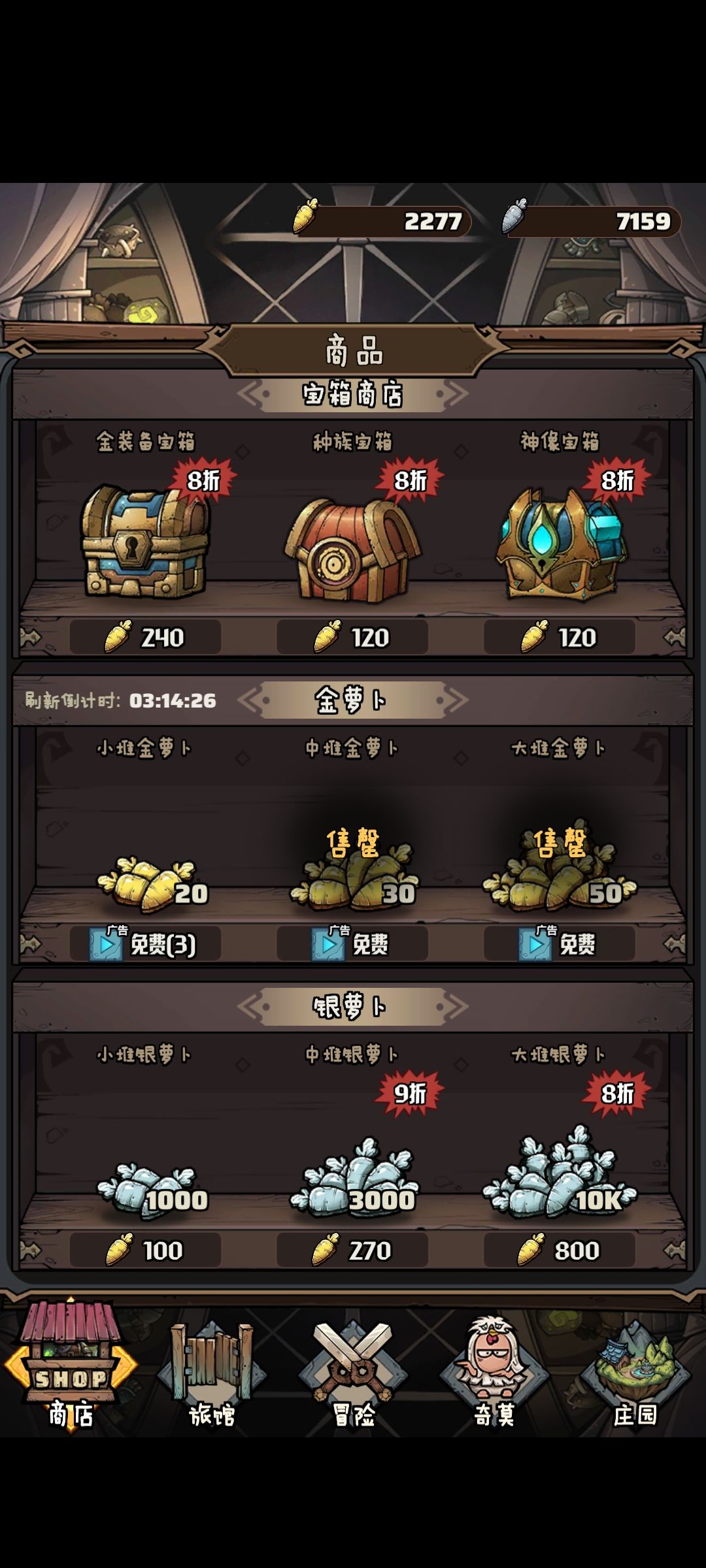 商店分为特价商店、宝箱商店、金萝卜、银萝卜