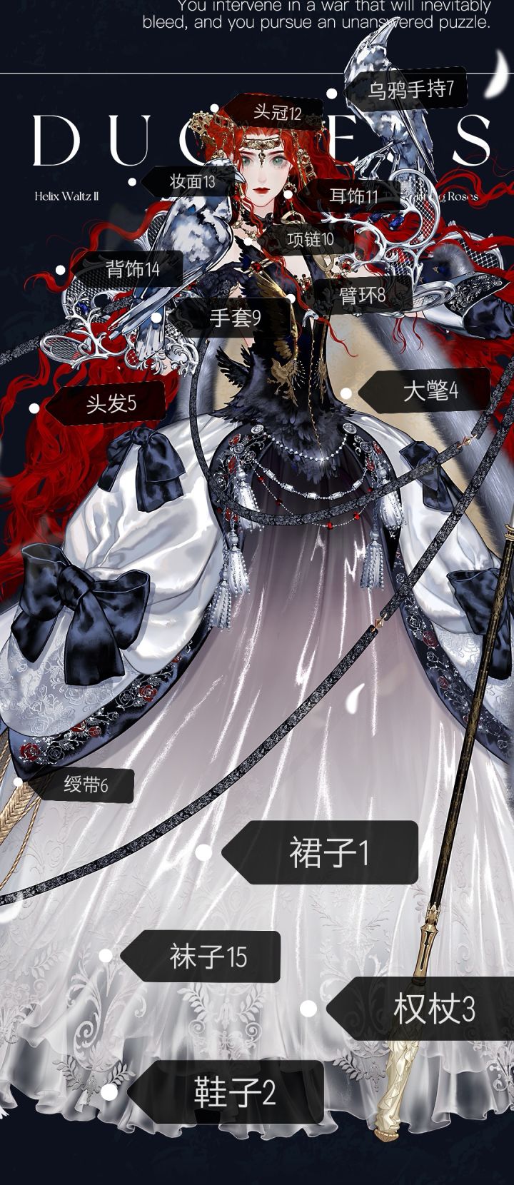 如果金套把绶带和裙子绑在一起,乌鸦手持和手套、臂环绑在一起则为12件。拆分则为15件。