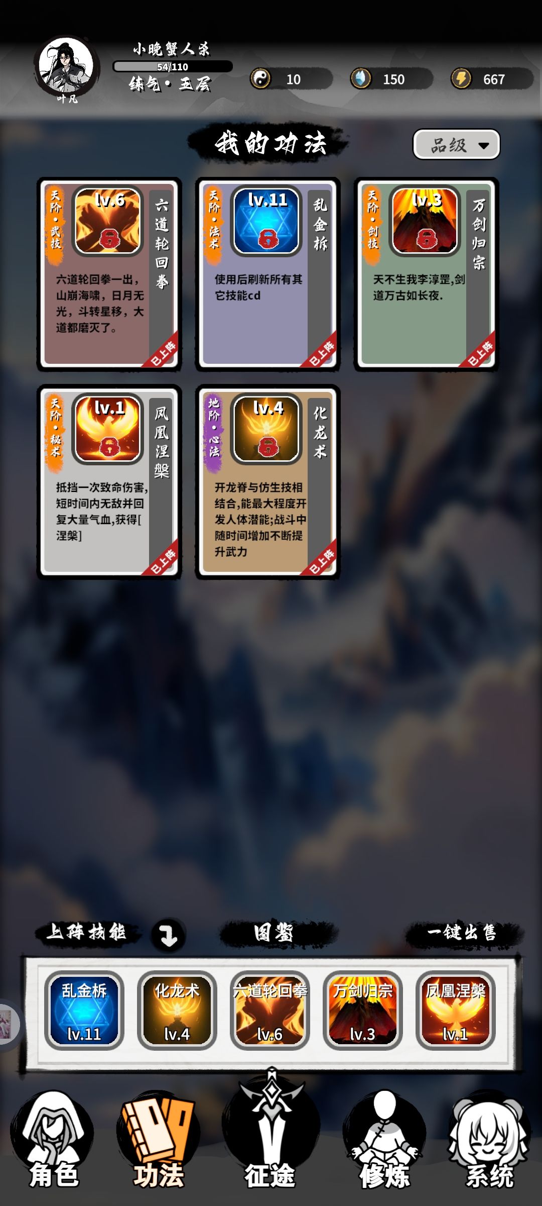 4-1-5-10乱金化龙万剑六道不坏,4-1修5次,4-2修2次,4-3修1次,4-4修1次,4-5修3次,4-8修2次,4-10修3次(因为没涅槃所以修炼频率有点高)