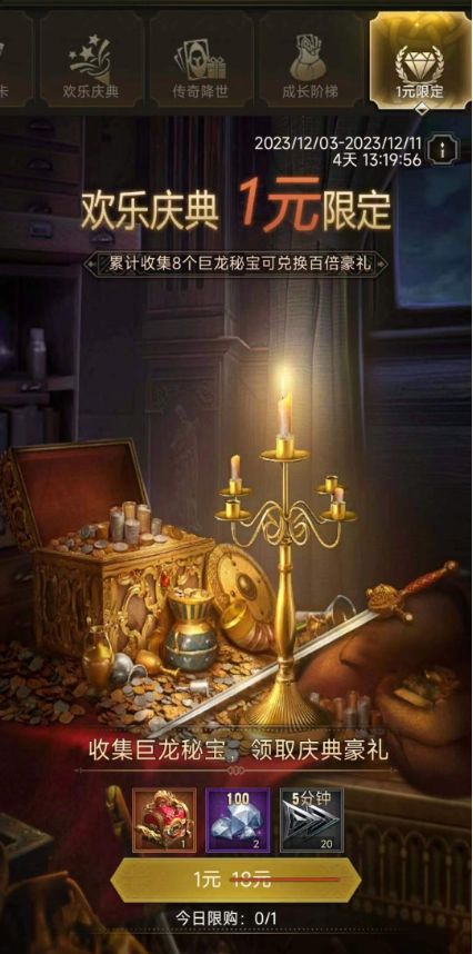 ➩福利2:1元购开服前八天,每天可用1元获取价值18元的超值大秘宝,集齐8个秘宝还可兑换百倍豪礼!
