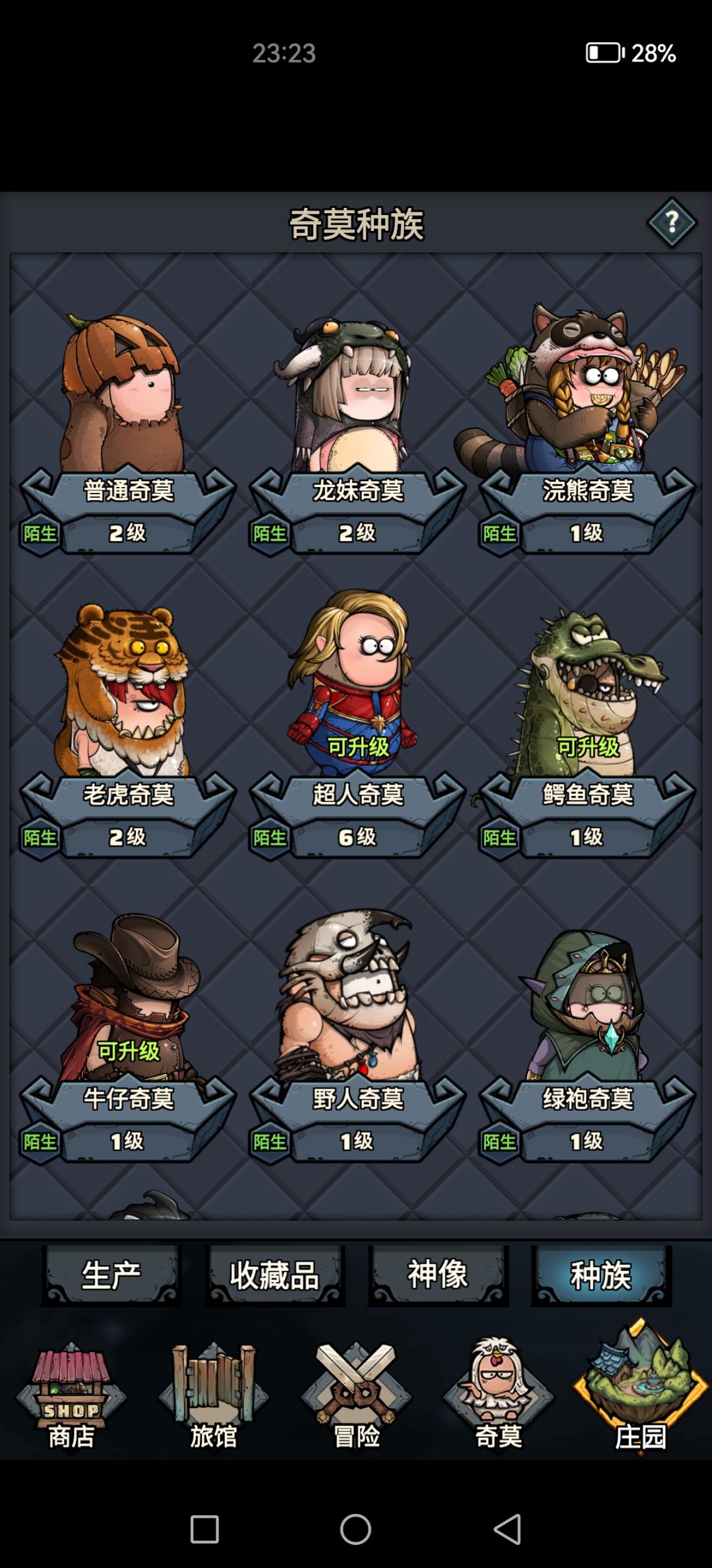 解锁各个种族,每个种族都有专属的被动和卡牌,种族等级影响招募角色的属性