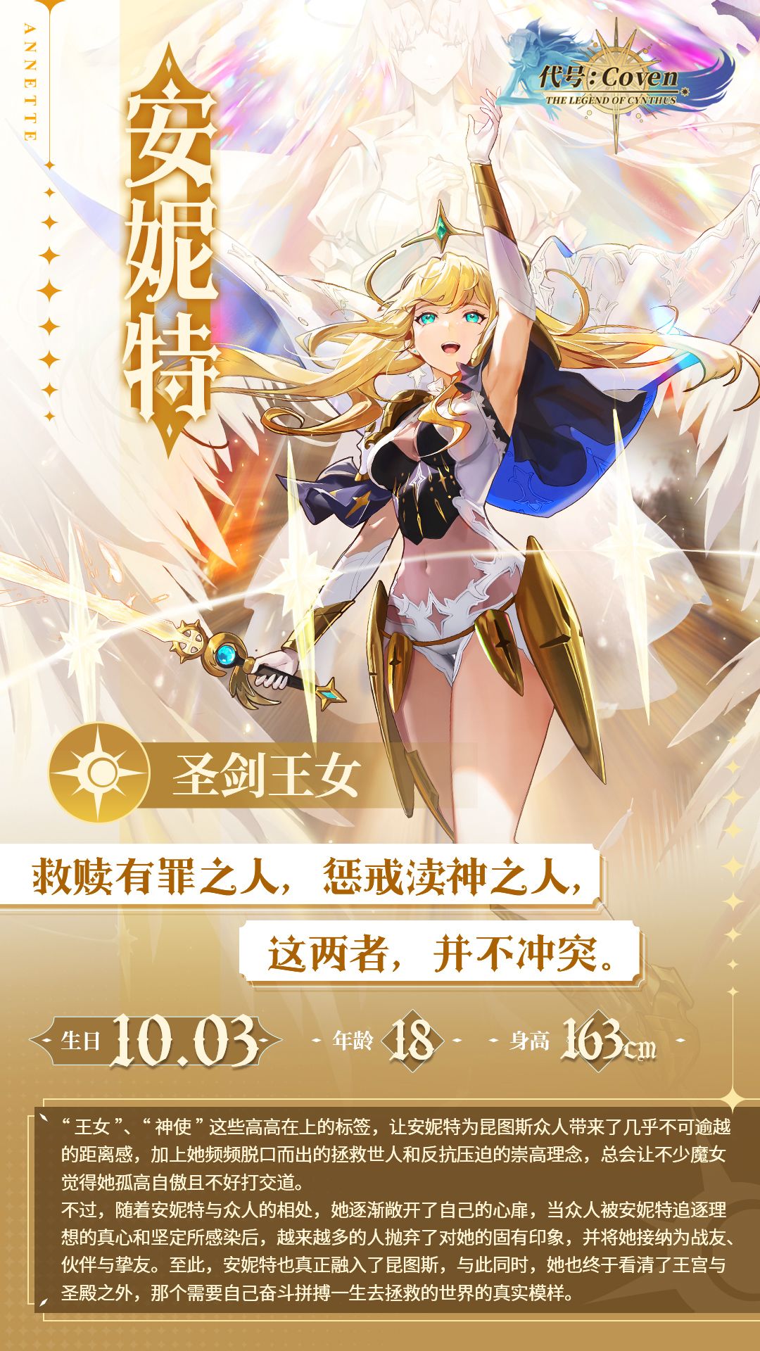 安妮特·克鲁格曼是凯洛尼亚王国的王女,也是神圣教会的圣歌使,她拥有世俗和宗教的双重尊贵身份,可谓是当今凯洛尼亚王国唯一一位站在权贵巅峰的女性。