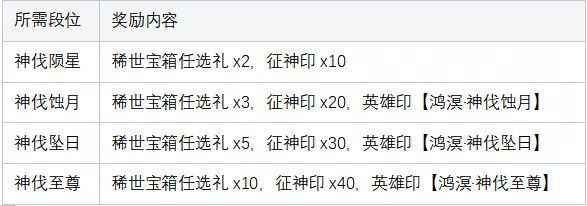 征神季结算中添加了额外的征神印及英雄印奖励。最终奖励为: