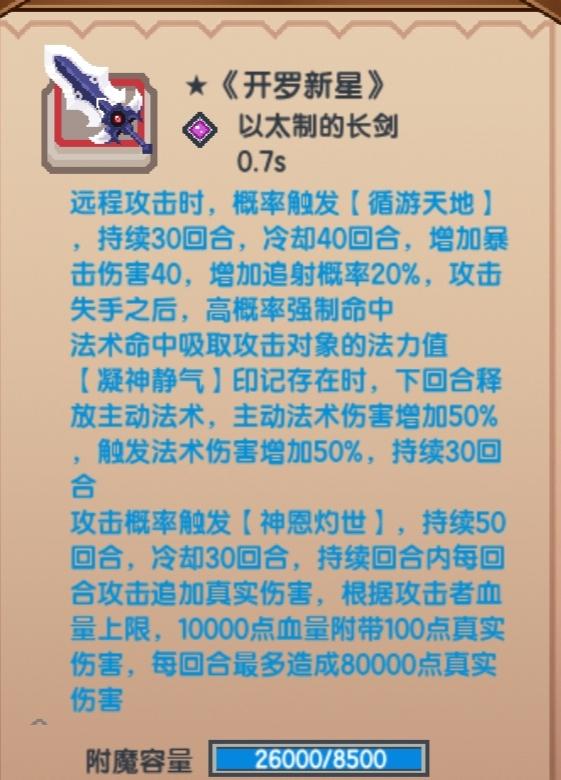 每50回合获得印记,印记可以保留,释放任意类型法术后转化为一个30回合的buff: