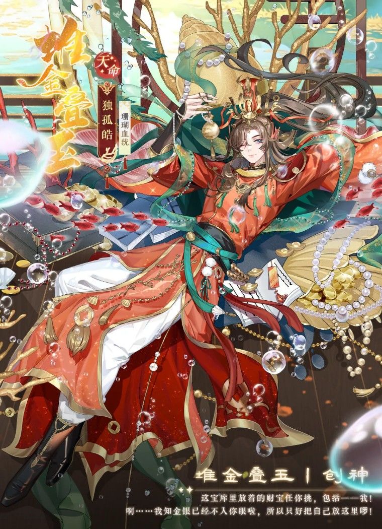 3、【活动产出】活动期间,每次羁绊都有概率获得天命侍从独孤皓魂魄、国士侍从淳于凛、珊瑚宝盒、限定头像/头像框/气泡“珊缘入梦”、独孤皓专属橙色羽翼玄珊潆波、淳于凛专属紫色羽翼绛树瑶宫、血统变更道具“星海凝光”;每次十连必出珊瑚信物多选一宝箱