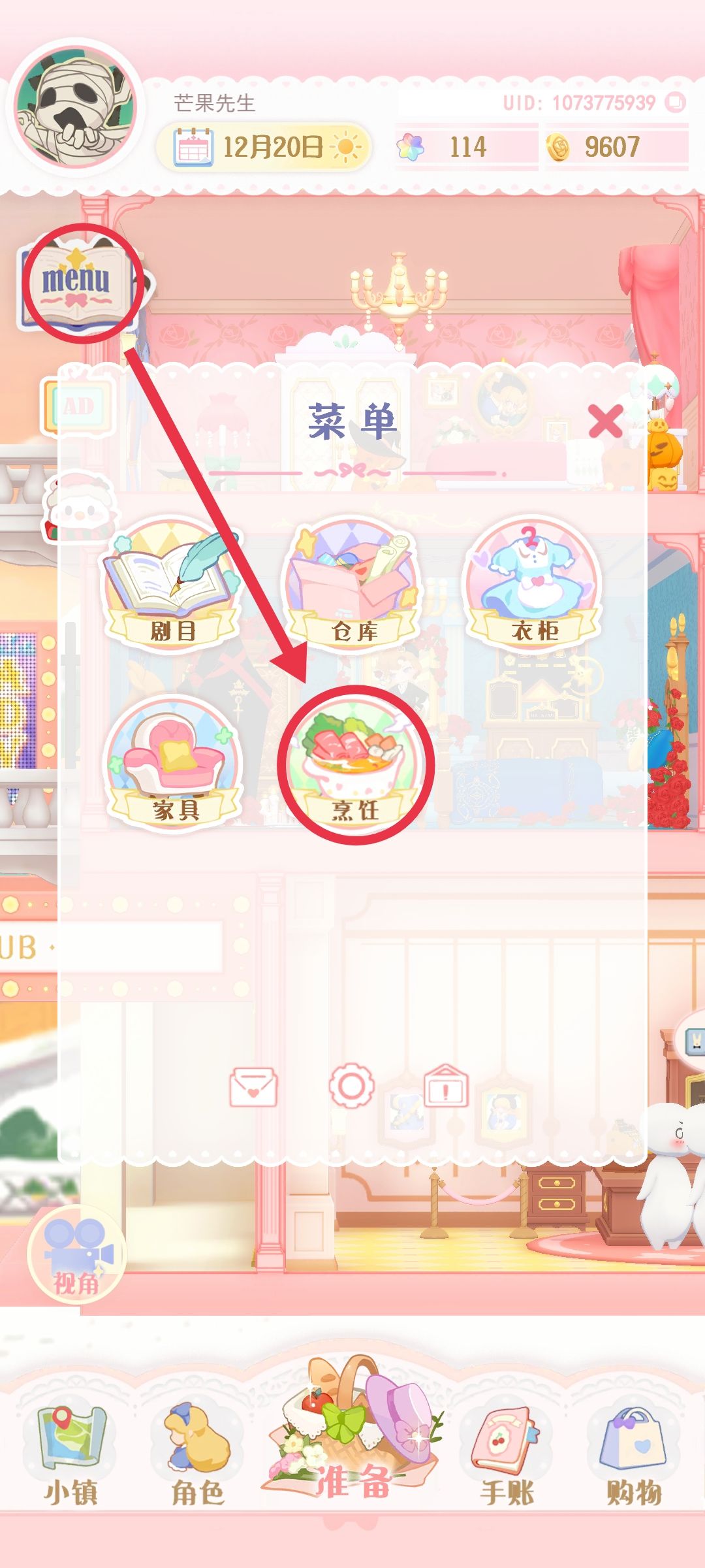 烹饪需要将版本更新到1.1.0及以上才会在菜单里显示