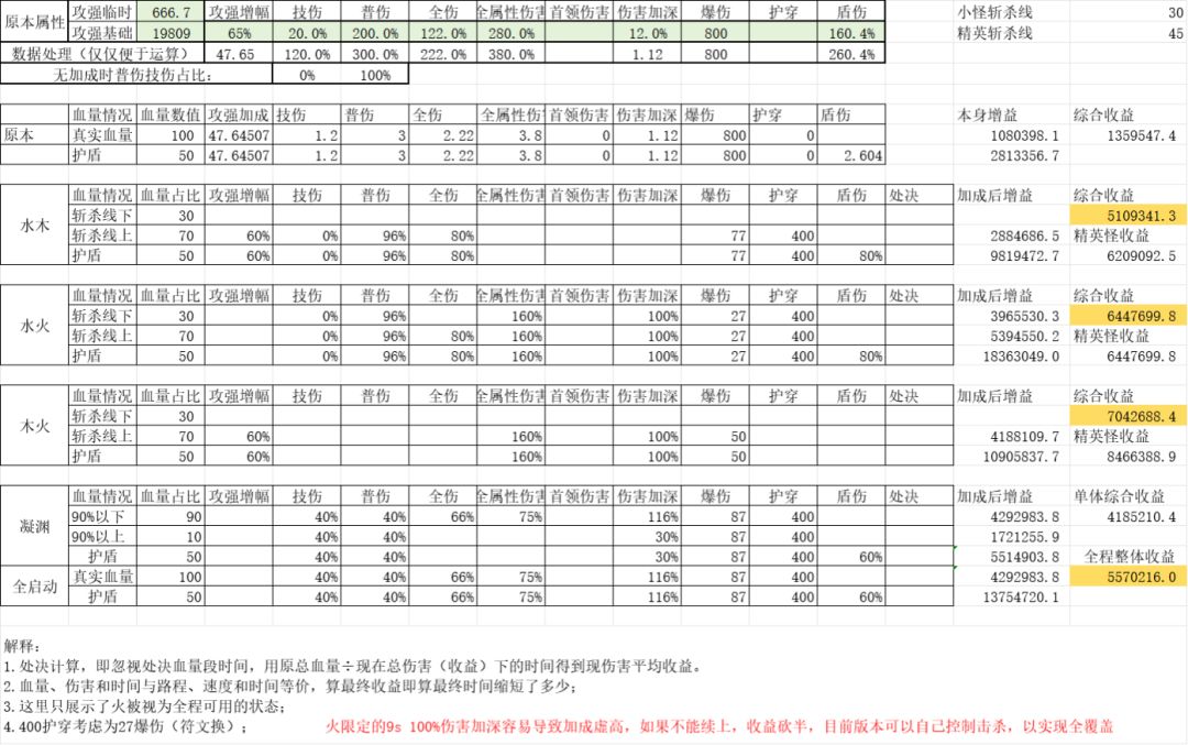 由于具体占比不是很清楚,这里火按照五五开,木这里按照六四开(技:普)