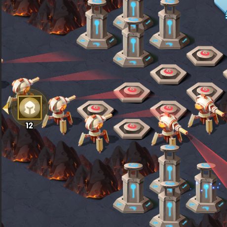 1、警戒机器人会持续警戒面向方向最近两格的地区,对进入其中的单位造成巨力打击,使其朝面向方向不受控制地持续移动