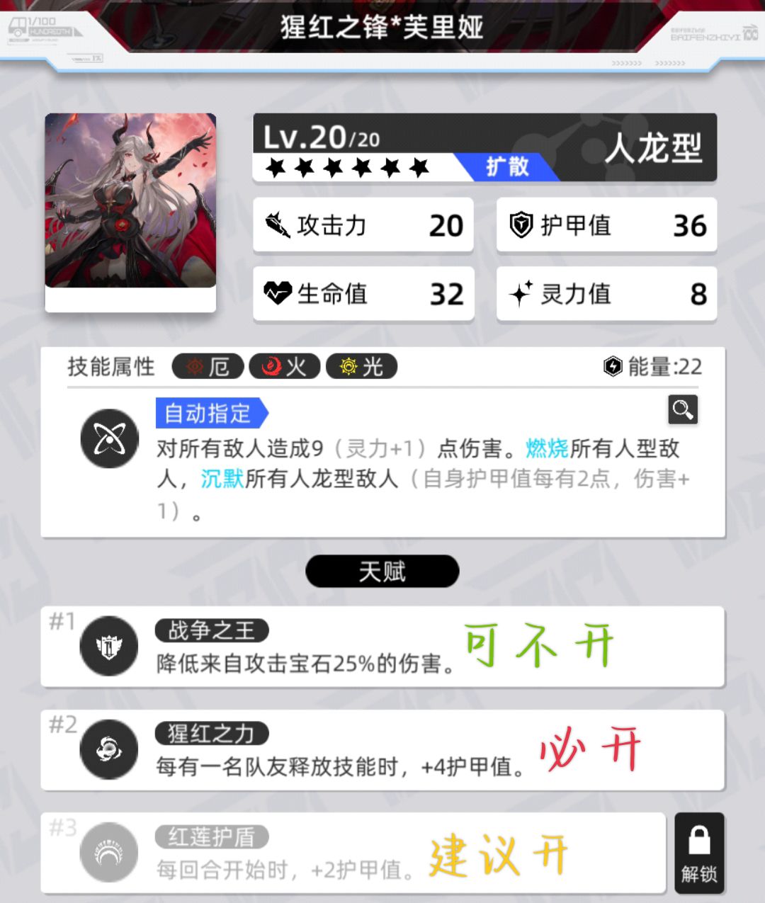 叠甲前的光醒皇还是有被俩刀带走风险的,因此优先开启天赋【1】减伤