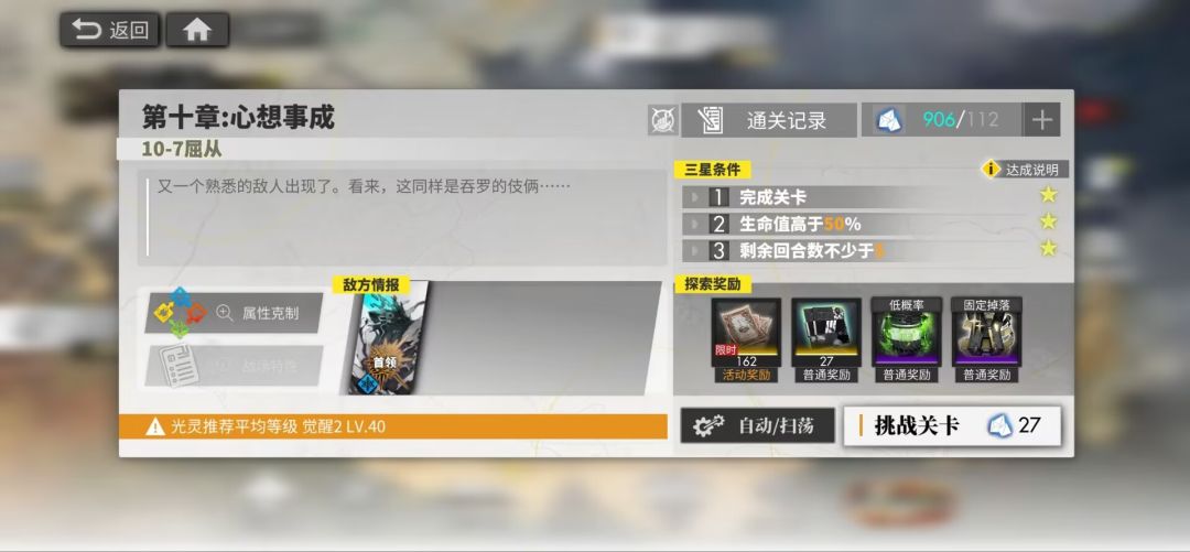 前期只需要用转色不断铺垫转色,等到BOSS近身的时候利用主动技能清掉近身区域的所有基台,当BOSS落地后利用铺垫好的火属性格子绕身普攻,脆皮的BOSS会直接被清掉。这里可以考虑带上治疗提升容错率,也可以全输出光灵追求极致的暴力。