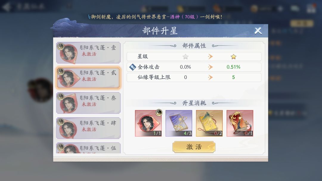 以攻击为例,单个阴阳部件激活增加0.51%,单个普通部件激活增加0.14%