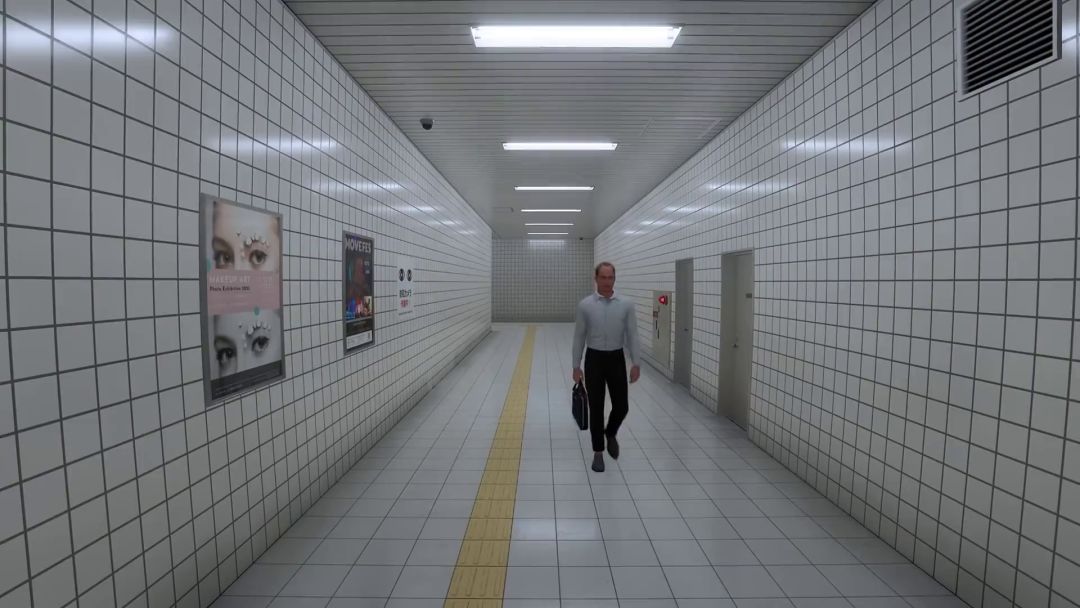 游戏的规则很简单,你被神秘力量困在了一个无限循环的地铁通道里,一开始你会发现,无论你怎么走,最后都会回放这个熟悉的走廊,看到同一个有点秃顶的社畜大叔。