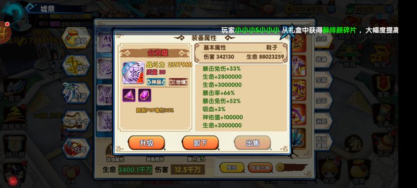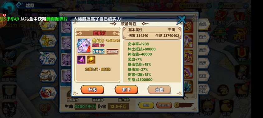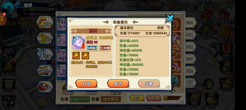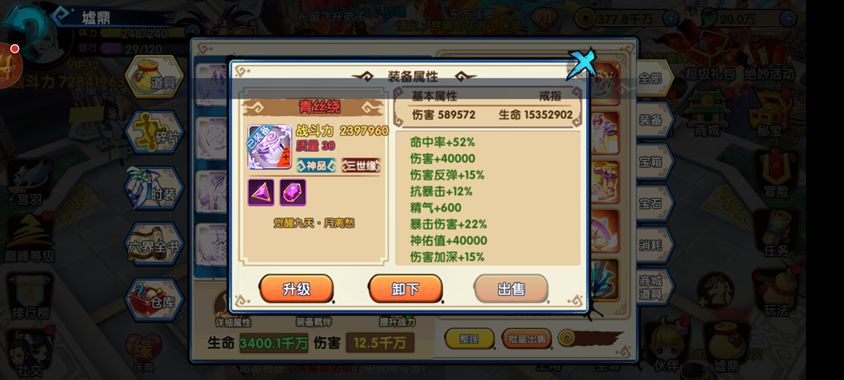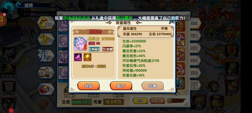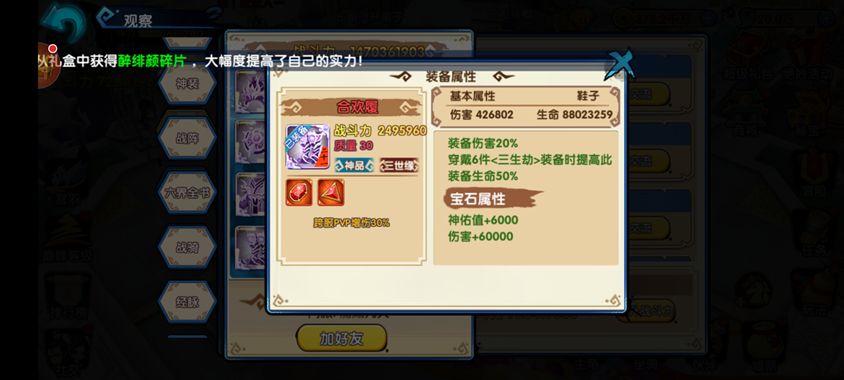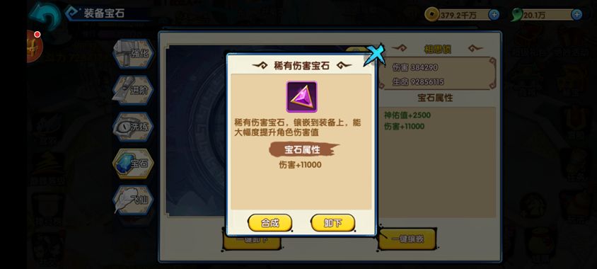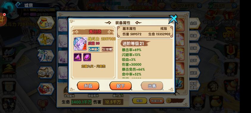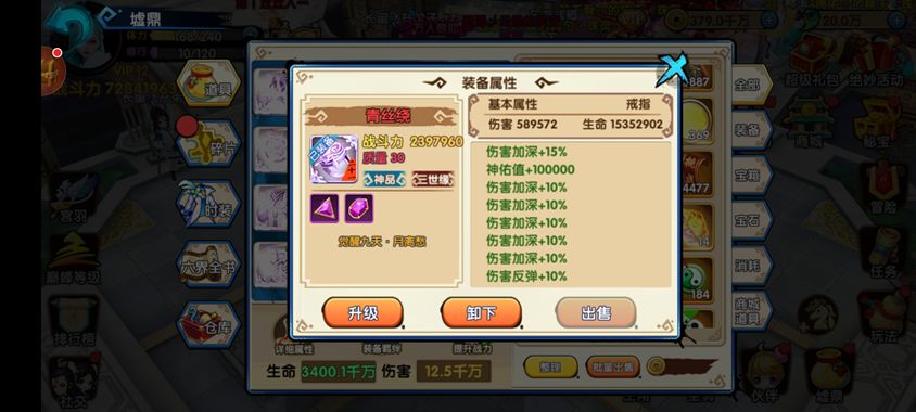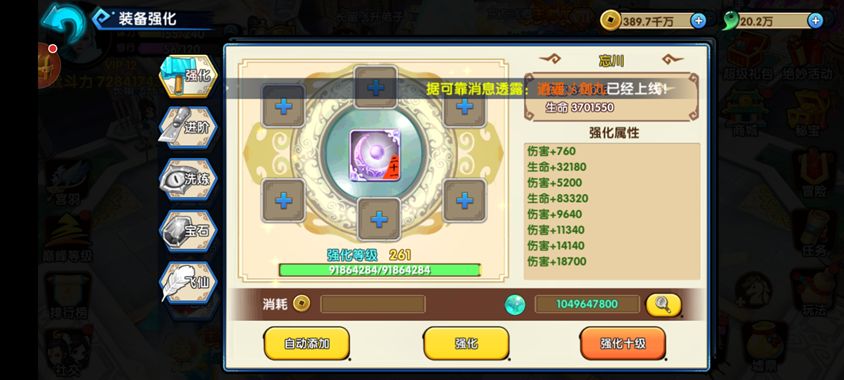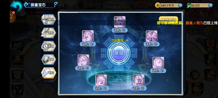 分为五大板块提升情缘装备属性,分为强化,进阶,洗练,宝石,飞仙。