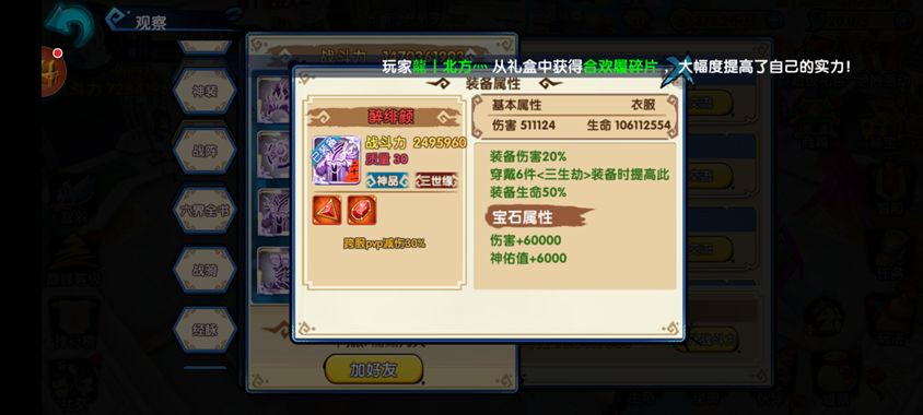 七个情缘装备和一个翅膀一共可以镶嵌16个宝石,累计在一起可以加大量伤害。