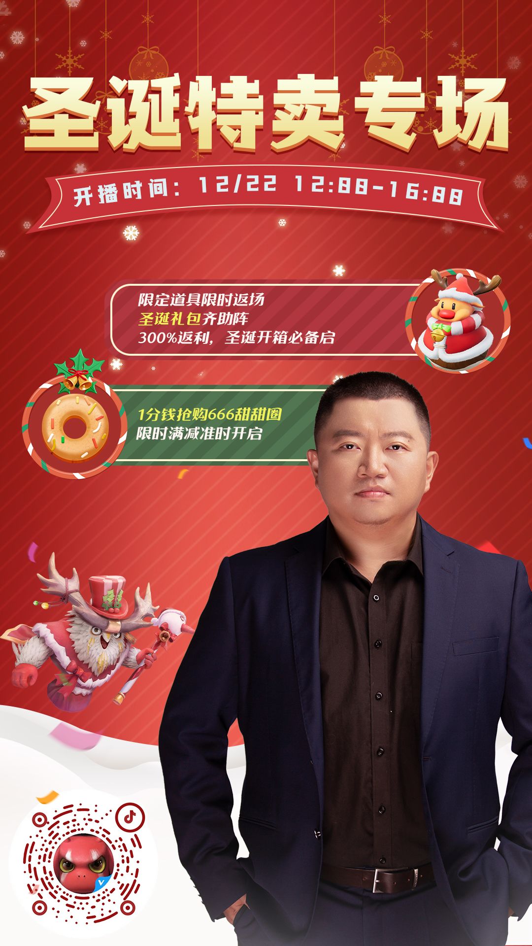 抖音直播丨圣诞特卖专场,1分钱抢购666甜甜圈