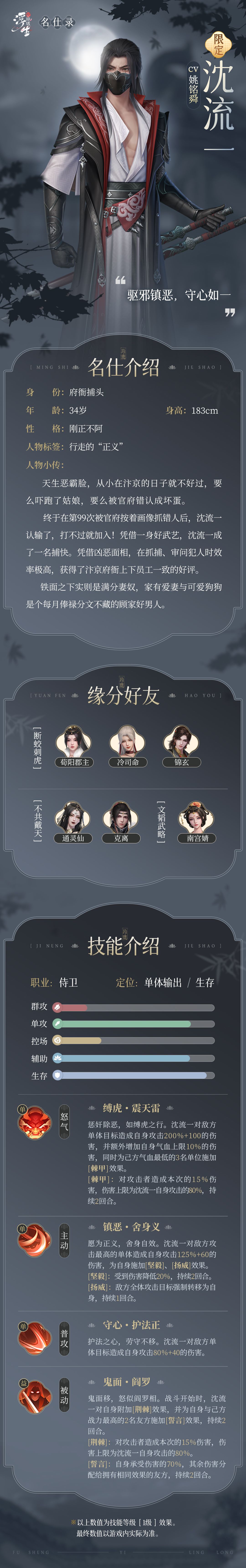 本期浮生名仕录,就让灵儿为各位大人揭开府衙捕头——沈流一温情的一面吧~
