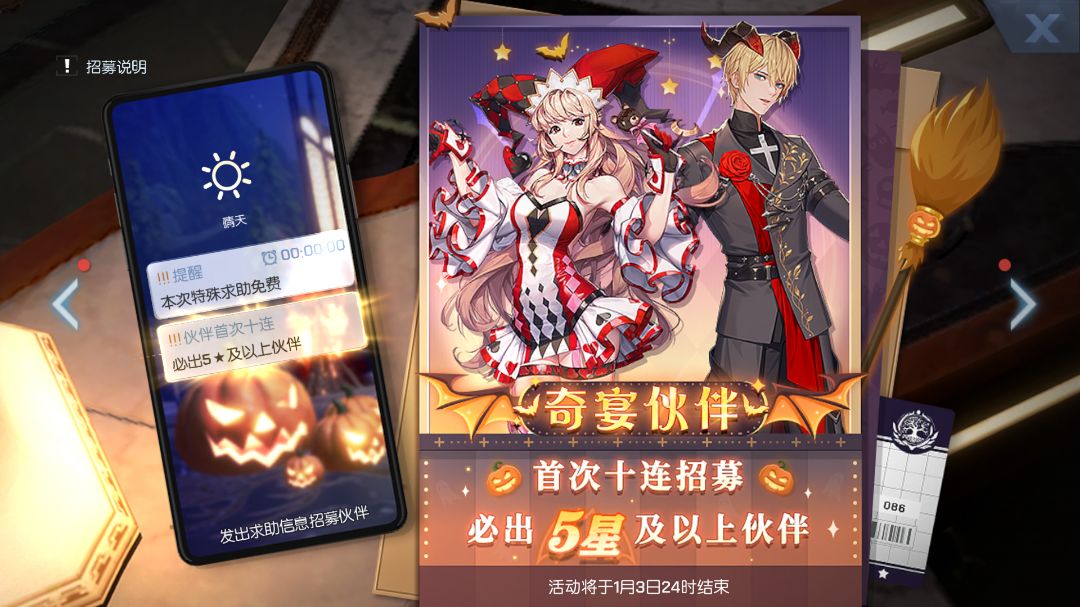本期奇宴伙伴奇宴·恺撒、奇宴·夏弥将在活动期间限时概率提升!活动首次十连招募更有必得5星及以上伙伴的超级福利!
