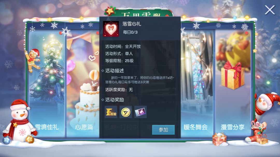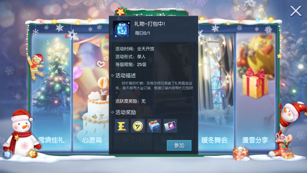 活动期间,前往卡塞尔学院参与落雪心礼活动,将祝福打包成浪漫心礼,即可获得经验、金币奖励,首次打包还可获得冬月摩羯礼券~