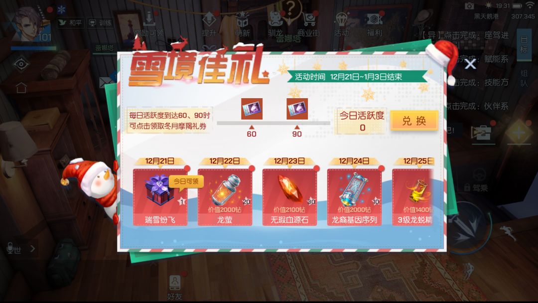 收集指定数量的冬月摩羯礼券,还可以在冬月摩羯商店兑换头像·雪鹿舞曲、头像·欢铃夜颂、头像框·松礼星光、气泡·花暖之馨、聊天背景·霖沐白兰、称号·冬梦奇行、10级圣核兑换券、10级精神圣核、龙威铸铁、诫律锆石等好礼哦~