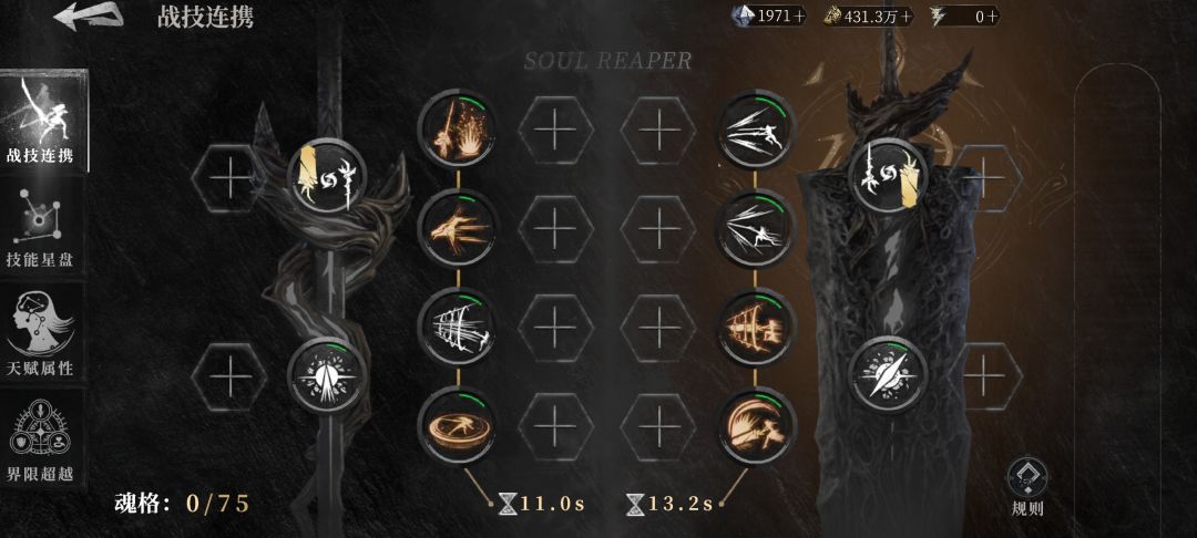 邪神+星辰女神羁绊:三阶羁绊在20秒内使技能链上的技能冷却时间为0,且不消耗耐力,冷却48秒