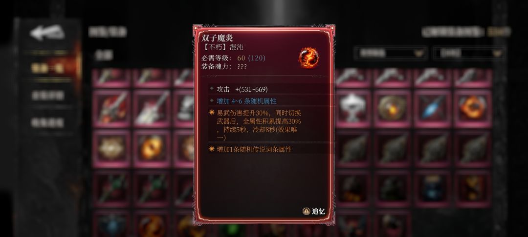 这里说一下不推荐不朽理由(活物、遗骨、混沌、圣物),目前现有的装备都带冷却时间,冷却时间长伤害不稳定等问题,综合实战效果不如套装。所以能做套装的情况下争取做套装,双生币材料紧张的情况再用以上两图(混沌、圣物)不朽弥补