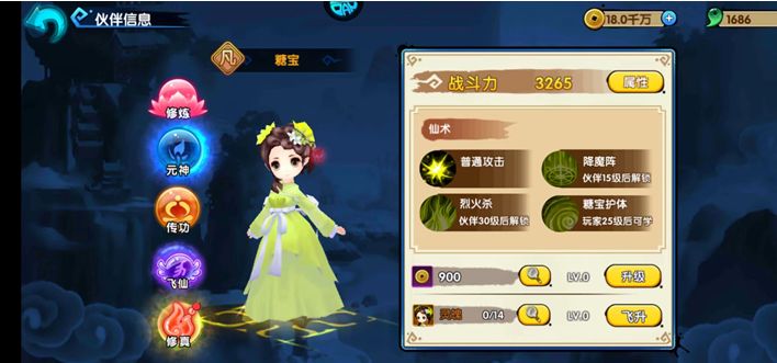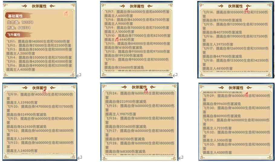 可见糖宝飞升不仅大量提高自身生命、伤害、伤害减免,还可以提高主人伤害。如下图: