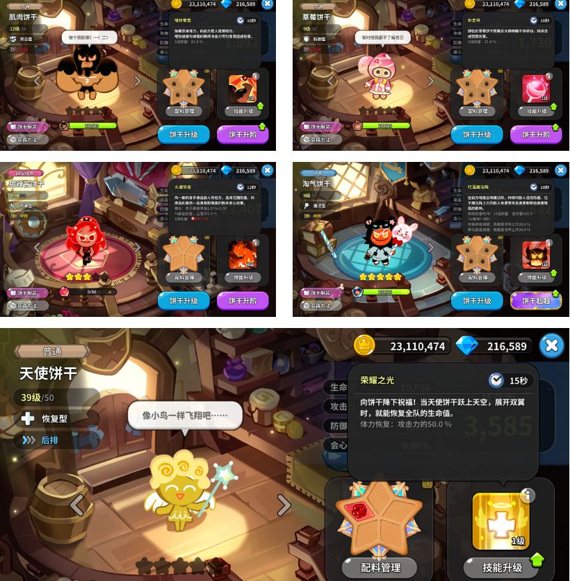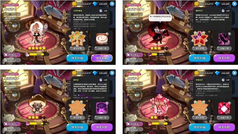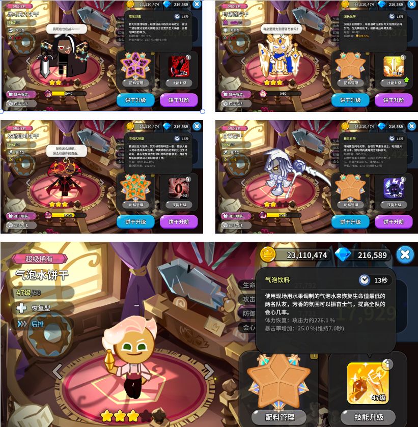 因为饼干是不能重置的,所以要升级饼干一定要谨慎,建议大家前期先推主线任务,囤积钻石和模具,然后去抽取饼干,等队伍大概走向差不多定下来之后,再去优化饼干。