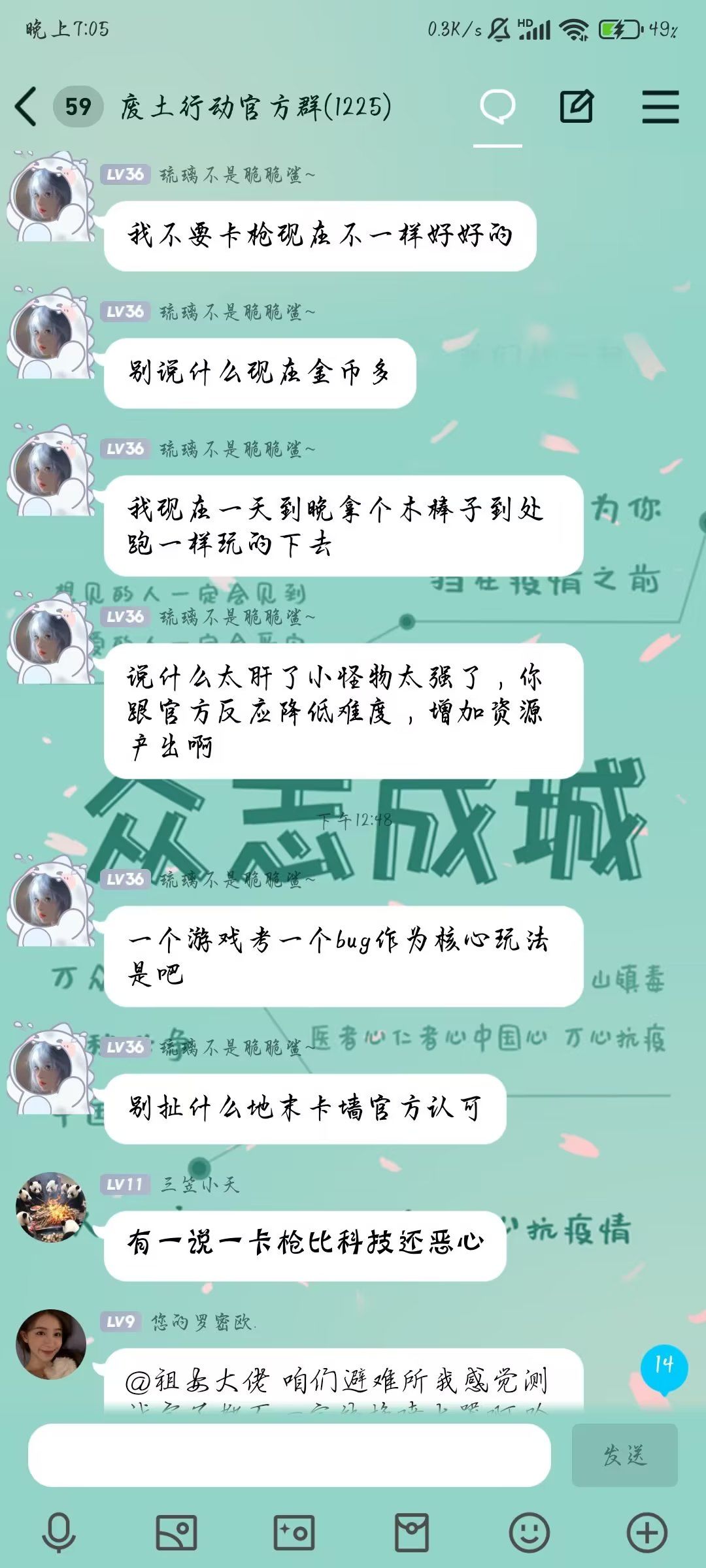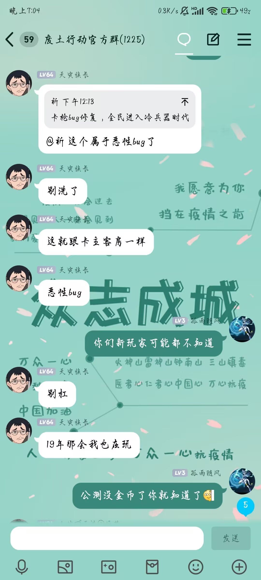 在废土行动新版本重启首测中,水果家族成员发现恶性bug,于是立刻集体日夜在群里呼唤修复这一恶性机制,最终在他们的共同努力之下,官方成功修复废土存在七年之久的诟病,让我们感谢他们的付出……